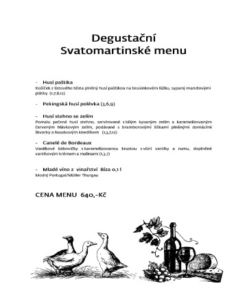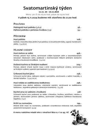 Svatomartinský týden a speciální Degustační Svatomartinské menu bude k dispozici od 11. 11. do 15. 11. 2024, ale pozor!
